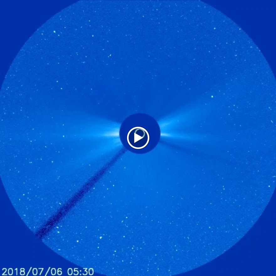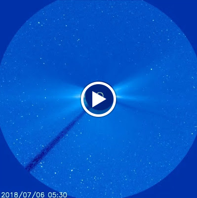 El 5 de julio alrededor de las 1300 UT, el Observatorio Solar y Heliosférico (SOHO) observó una eyección de masa coronal (CME) ondeando sobre la extremidad occidental del sol.Los analistas de NOAA creen que la nube se está alejando de la Tierra y no afectará a nuestro planeta.