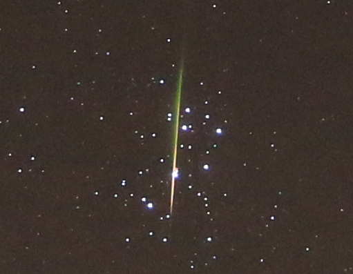 El meteoro de colores del arco iris era aproximadamente de 3ª magnitud, es decir, similar en brillo a las estrellas de las Siete Hermanas.