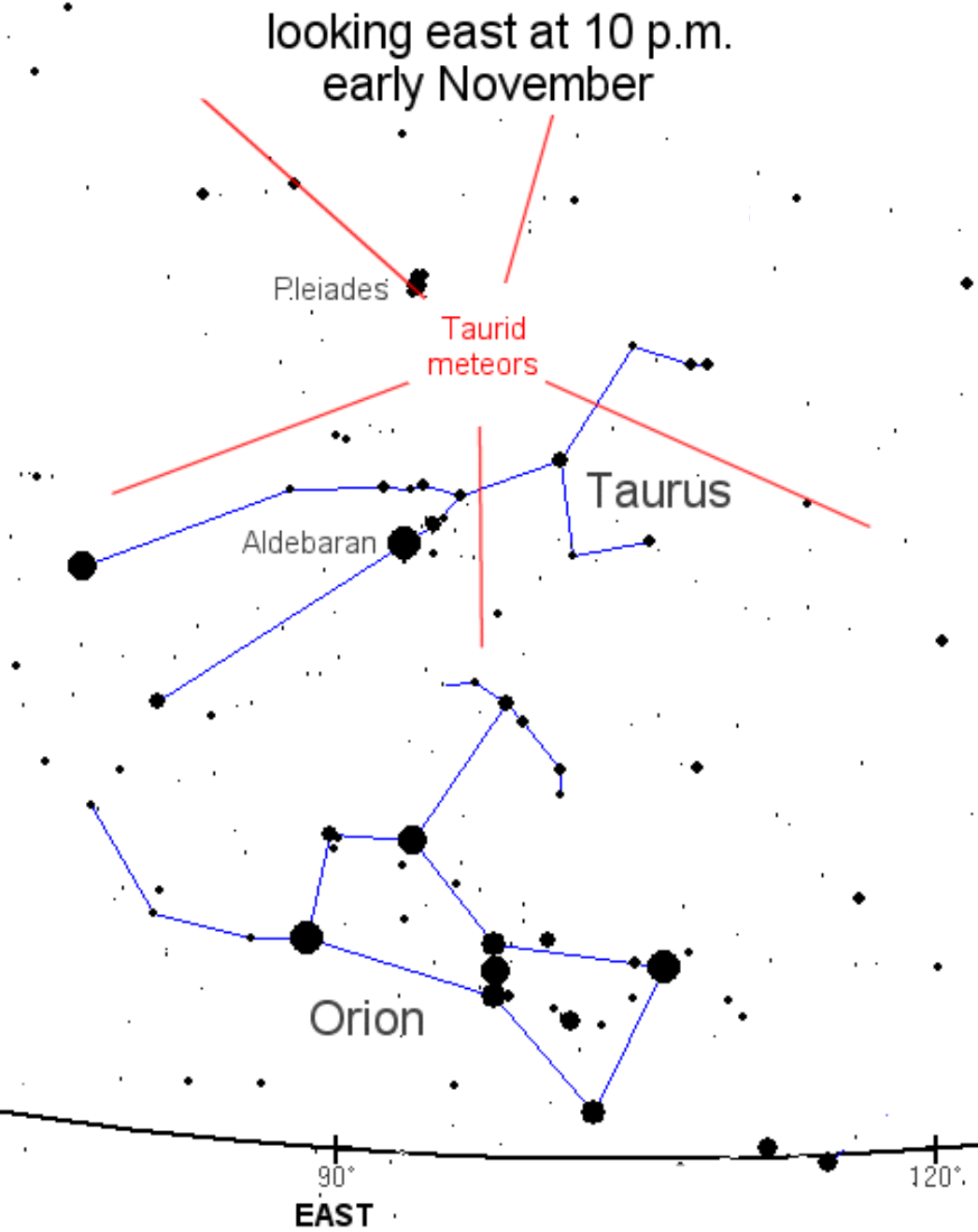 La llovizna resultante de meteoros que emergen de los cuernos de Tauro es notable, no por su cantidad, porque las tasas de meteoros Taurid tienden a ser bajas, sino por su luminosidad.