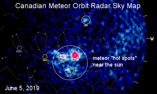 Cuando la lluvia alcanza su punto máximo el 7 de junio , Brown espera que su radar detecte un Arietid cada 20 segundos, una tasa que sitúa a los Arietid entre las mejores lluvias de meteoros del año.