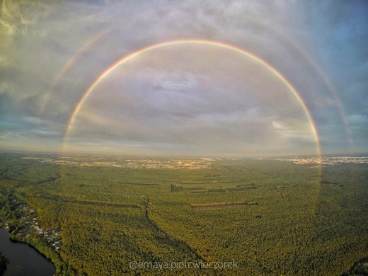 La vista de drones ilustra otro aspecto común pero frecuentemente ignorado de los arcoíris. Son dobles .
