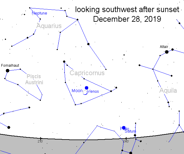 Venus ⭐ y la esbelta Luna🌛 creciente estarán muy bien juntos en la constelación de Capricornio.