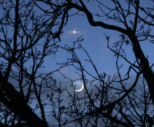 La visión de una conjunción Venus-Moon enmarcada por el crepúsculo azul está fuera de este mundo: