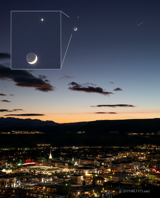 "¡Qué hermosa manera de relajarse el año - Venus y la Luna creciente con la Tierra!" dice Greiner.