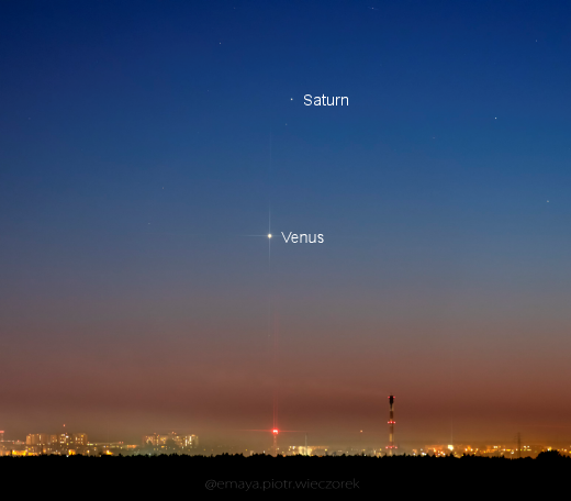 Piotr Wieczorek fotografió los dos planetas que convergen en Bydgoszcz, Polonia, el 10 de diciembre: