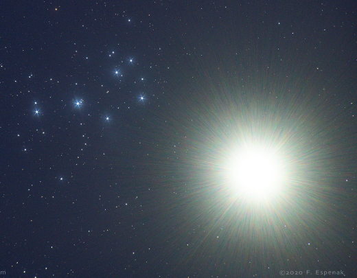 Venus y las Pléyades están teniendo una rara conjunción, con Venus supernova brillante aparentemente dentro del Cùmulo Estelar el 3 de abril.
