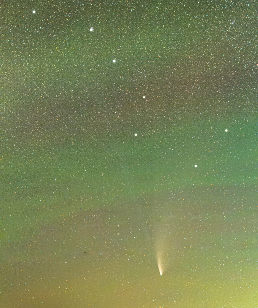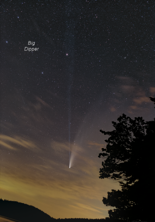 "La cola de iones del cometa es verdaderamente larga, se extiende más de 20 grados dentro del cuenco del Big Dipper y más allá.