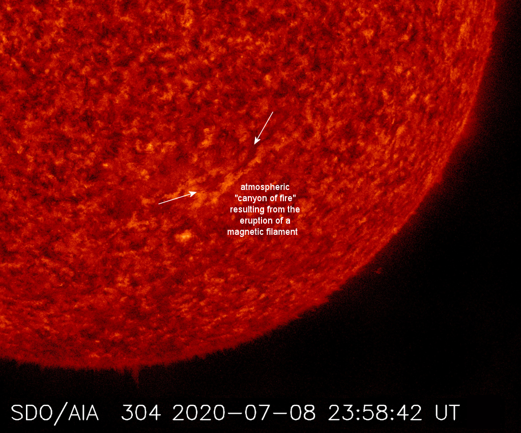 La erupción cortó un " cañón de fuego " en la atmósfera del sol y arrojó una débil eyección de masa coronal (CME) al espacio.